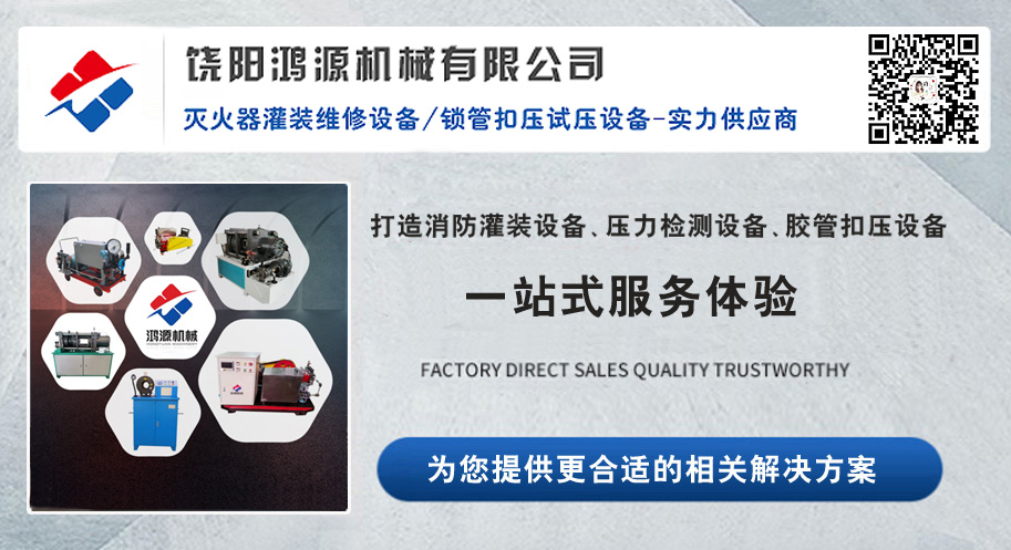 饶阳鸿源机械有限公司(饶阳试压泵厂)是始建于1978年,是原机械电子工业部试压泵定点生产企业。历经几十年的风雨沧桑和顽强拼搏,现拥有现代化标准厂房15000平方米,资产总值6000余万元。是从事灭火器维修设备、消防灌装设备、压力检测设备、胶管扣压设备和锁管机等产品研发、生产、销售和技术服务的专业企业。公司具有雄厚的科技开发力量,先进的生产设施,完备的检测条件,科学的现代化管理体系。并通过ISO9001国际质量管理体系认证,产品畅销全国各地并远销东南亚和欧美国家。